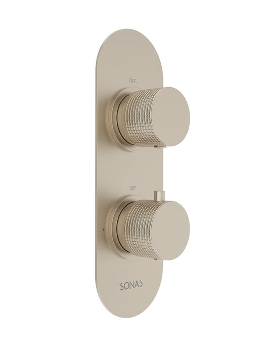 Product Code: USH0095 Product Description: ALITA Dual Control Triple Outlet Concealed Thermostatic Shower Valve Brushed Nickel ColourBrushed ...