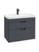 FREYA Wall Hung 80cm Two Drawer Vanity Unit Matt Night Sky Blue-Matt Black Handle